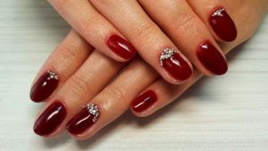 Серед дівчат останнім часом найбільш популярний червоний манікюр зі стразами. Такий яскравий дизайн привертає