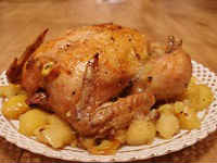 Курка з картоплею, запечена в духовці в рукаві випадок, коли інгредієнти від приготування в пакеті тільки виграють.