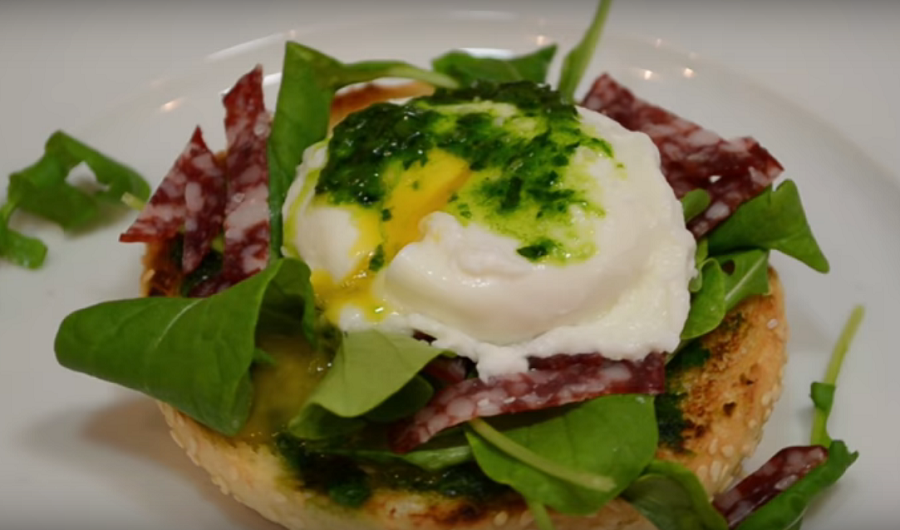 Цей бутерброд дійсно дуже смачний. Овочі на ароматної булочці з апетитним яйцем і духмяними ковбасками