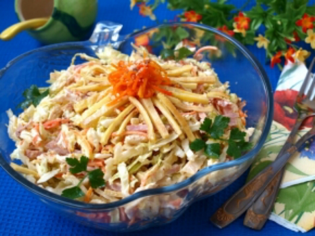 Представляємо вашій увазі рецепт дуже смачного і простого салату. Він має насичений пікантний смак.