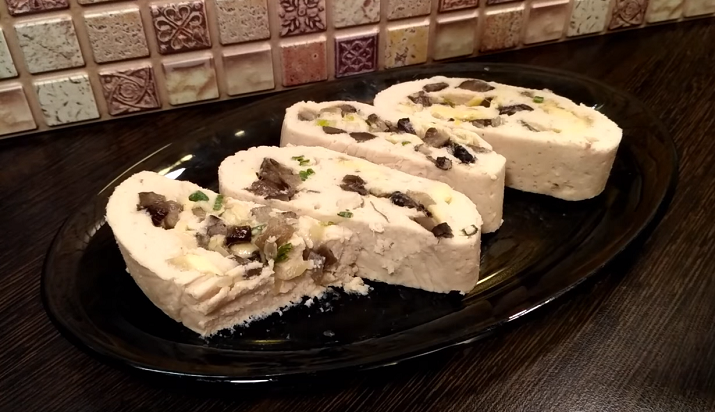 Пропоную вам рецепт дуже смачного і ніжного курячого рулету з грибами, сиром і зеленню. Готується він
