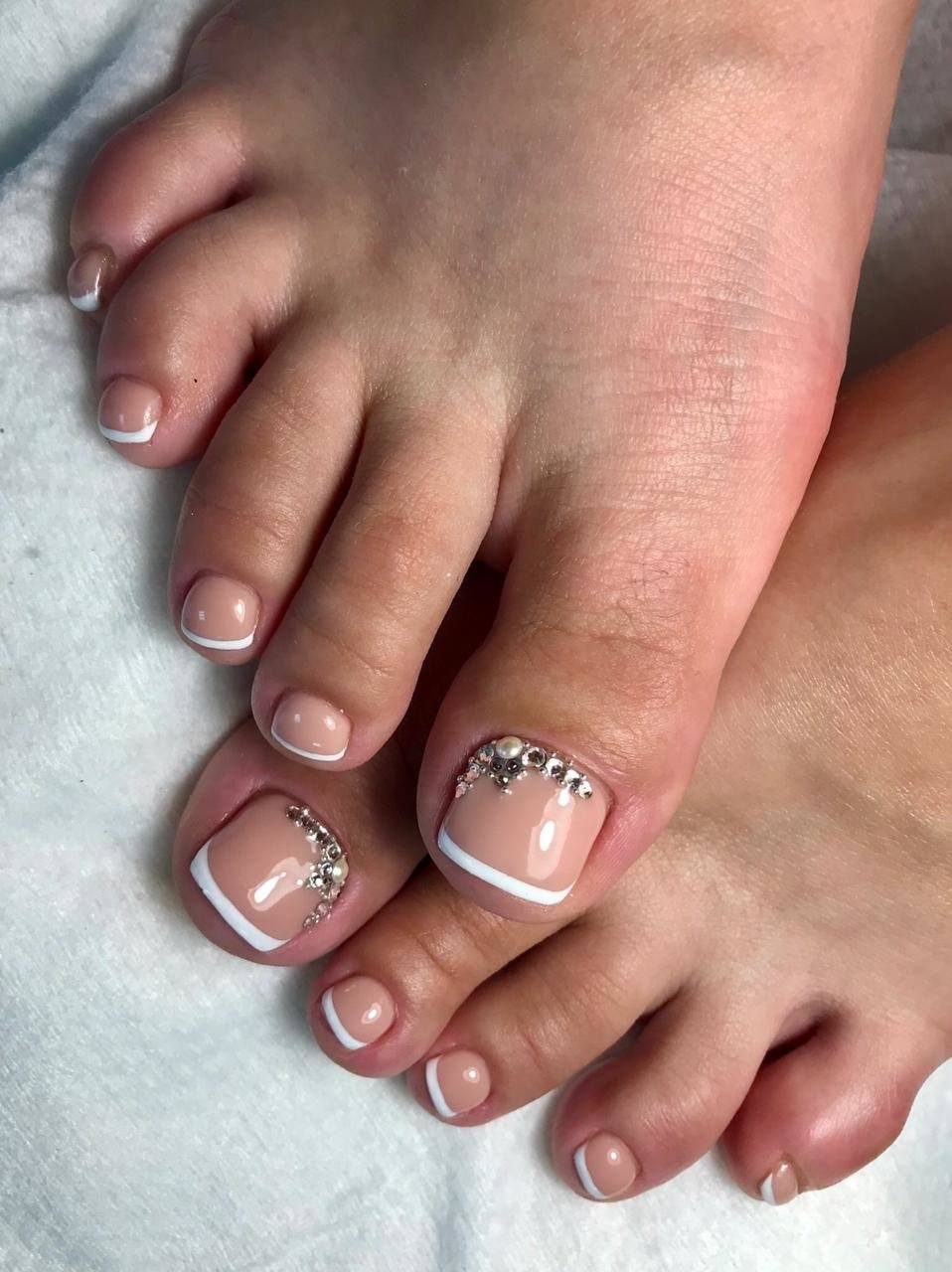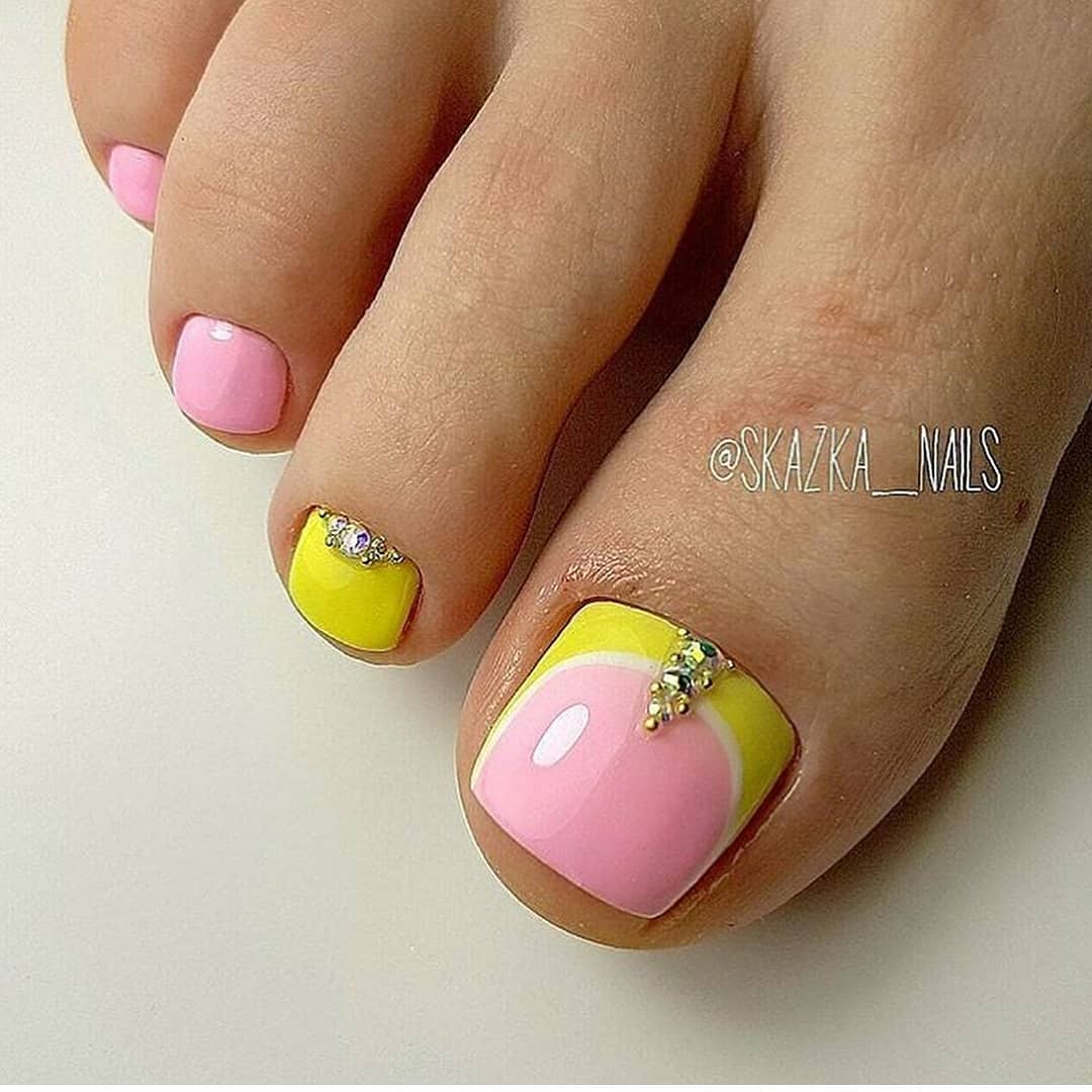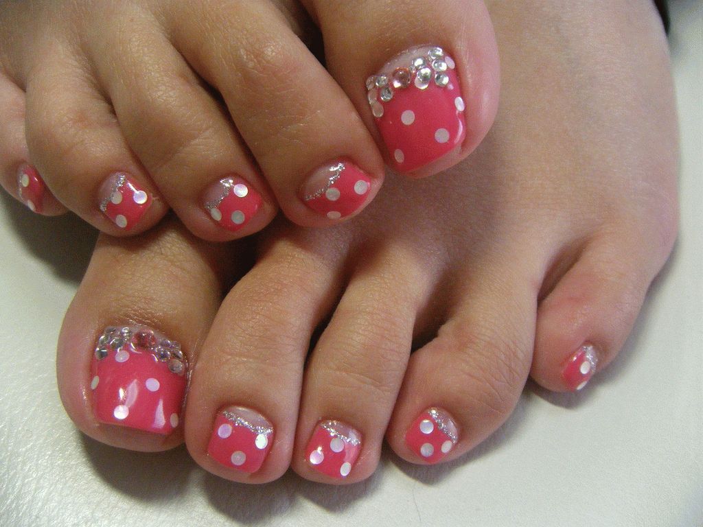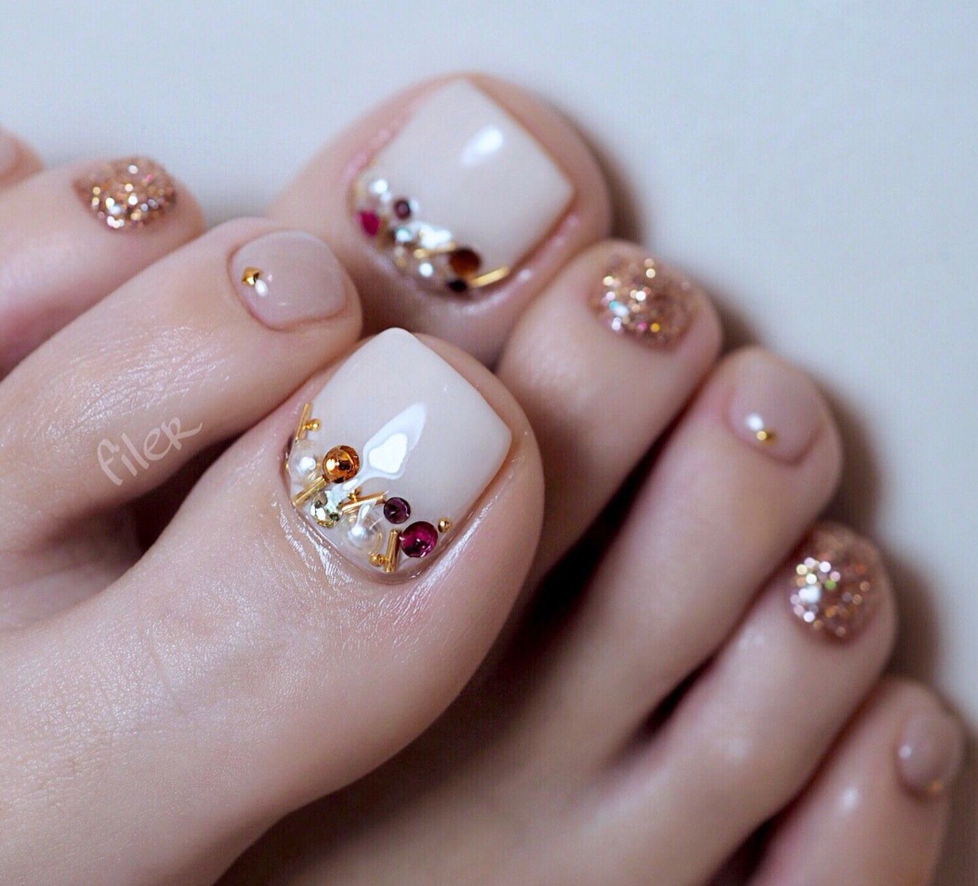 Для виконання більш привабливих варіацій педикюру не обійтися в цьому сезоні без всіляких каменів, страз і різноманітних блискіток. Всі ці елементи можна використовувати в педикюрі окремо або всі одночасно, тільки не забувайте, що в нашому випадку красиво – не значить нав’язливо. Яскравими акцентами можна виділяти лінію посмішки, створювати оригінальні візерунки, застосовувати поодинокі акценти на нігтиках або повністю покривати один-два пальчика. В якості основного покриття вам послужать не тільки прозорі підстави. Стрази, блискітки і камінчики дуже красиво виглядають на будь-якому колірному рішенні.