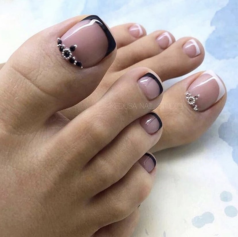 Серед найбільш популярних ідей: «negative space», френч педикюр з лунками, з ліпленням, зі стразами і фольгою, з малюнком, матовий френч педикюр і геометрія.