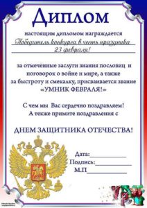 Однією з найбільш креативних ідей недорогого подарунка на 23 лютого є жартівлива сувенірна грамота з побажаннями. Її можна придбати в магазинах приколів або замовити в інтернеті. Оригінальний дизайн грамоти робить такий презент приємним і пам’ятним.