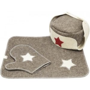 Для любителів попаритися в лазні приємною несподіванкою виявиться банний набір, виконаний в тематиці 23 лютого. Зазвичай у нього входять килимок, шапка, рукавиця. Більш повні банні комплекти коштують дорожче 500 рублів, тому тут не розглядаються.