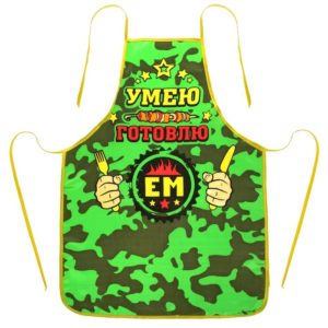 Стилізований фартух відноситься до категорії недорогих оригінальних подарунків на 23 лютого.Напередодні свята подібних тематичних товарів з’являється безліч. Досить вибрати підходящий, наприклад, такий як на фото. У такому зручному фартусі чоловік зможе проявити усі свої кулінарні здібності.