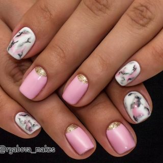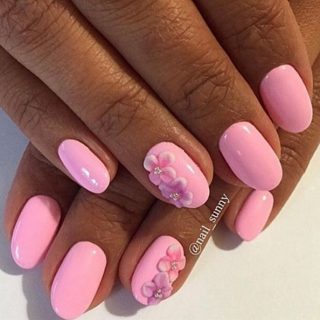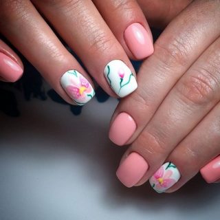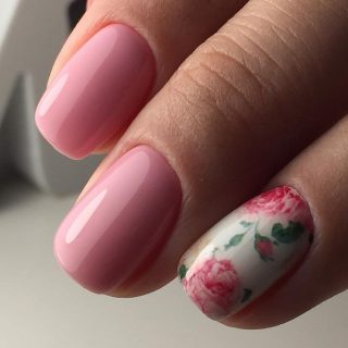 Квіти на будь-якому тлі манікюру надають композиції певну теплоту. Основними кольорами, які малюють на нігтях є: троянди, ромашки, тюльпани. Останні, звичайно ж, на 8-е березня. Про це манікюрі знайдете інформацію в іншій нашій статті. Нижче вибирайте кращий рожевий манікюр з квітами.