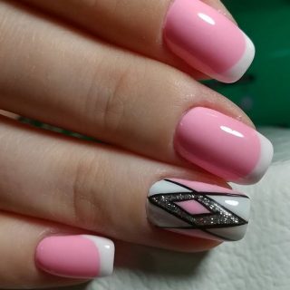 Рожевий френч виглядає свіжо в поєднанні з білим кольором і геометричного малюнку. Гарний варіант манікюру в рожевому кольорі з градієнтом і стразами. Рекомендуємо вам звернути увагу і на рожевий френч з малюнками сердечок. Класичний однотонний рожевий французький манікюр підійде в якості повсякденного манікюру або для роботи.