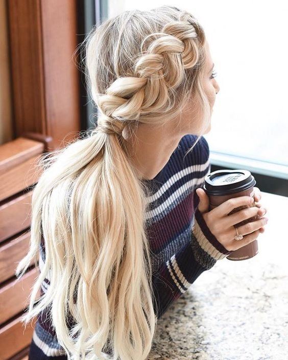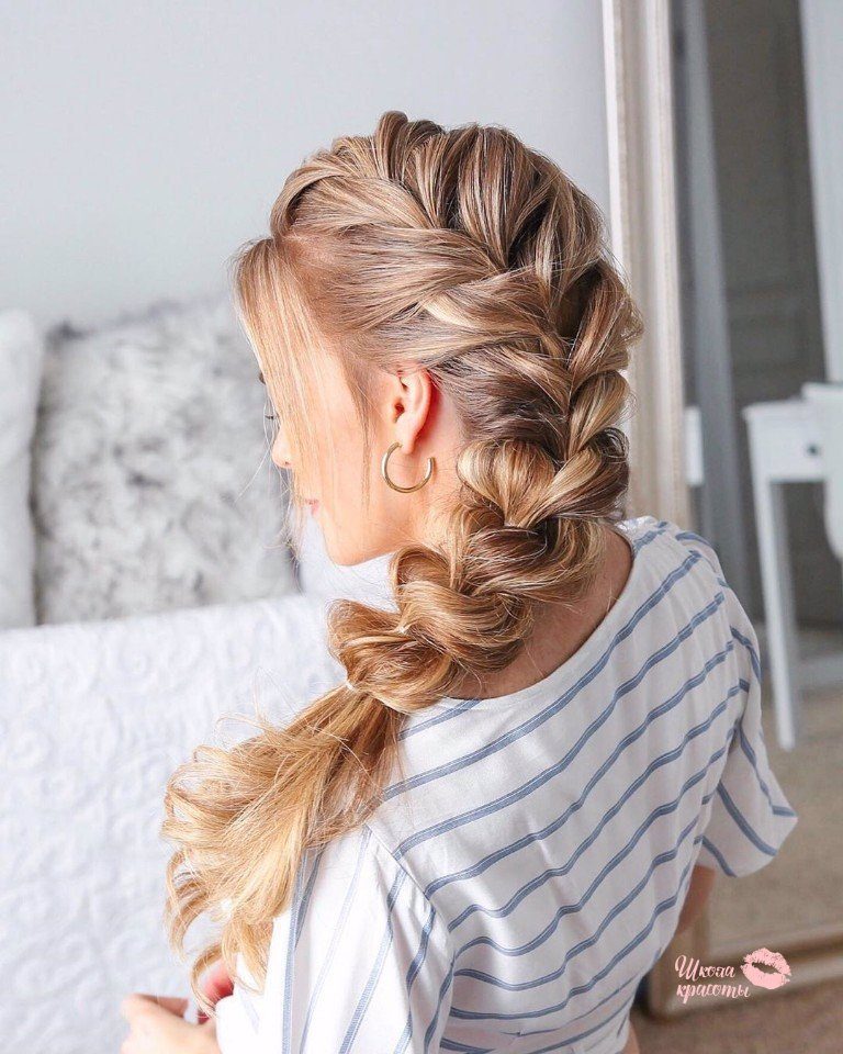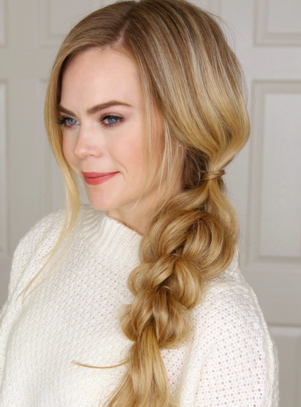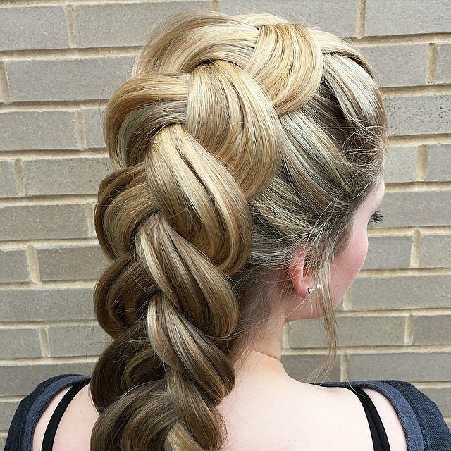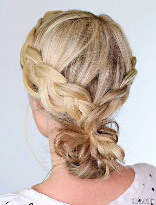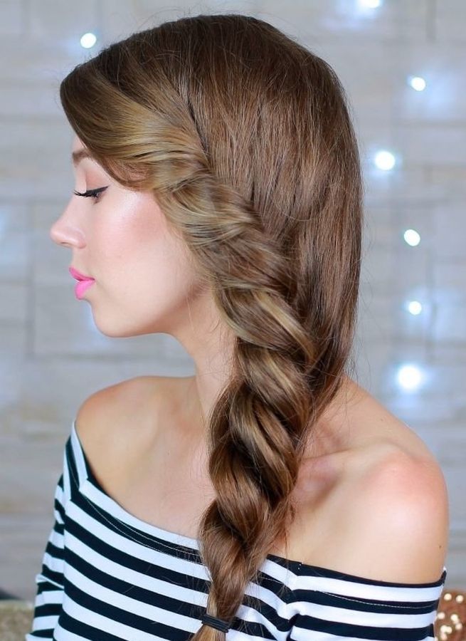 Дана зачіска доречна як для робочих буднів, так і для вечірнього відпочинку. Для виконання зачіски необхідно з одного боку голови відокремити невелику пасмо і скручуючи її в джгут довести до протилежної сторони, при цьому додаючи нові прядки. У завершенні зафіксувати зачіску гумкою або шпилькою.