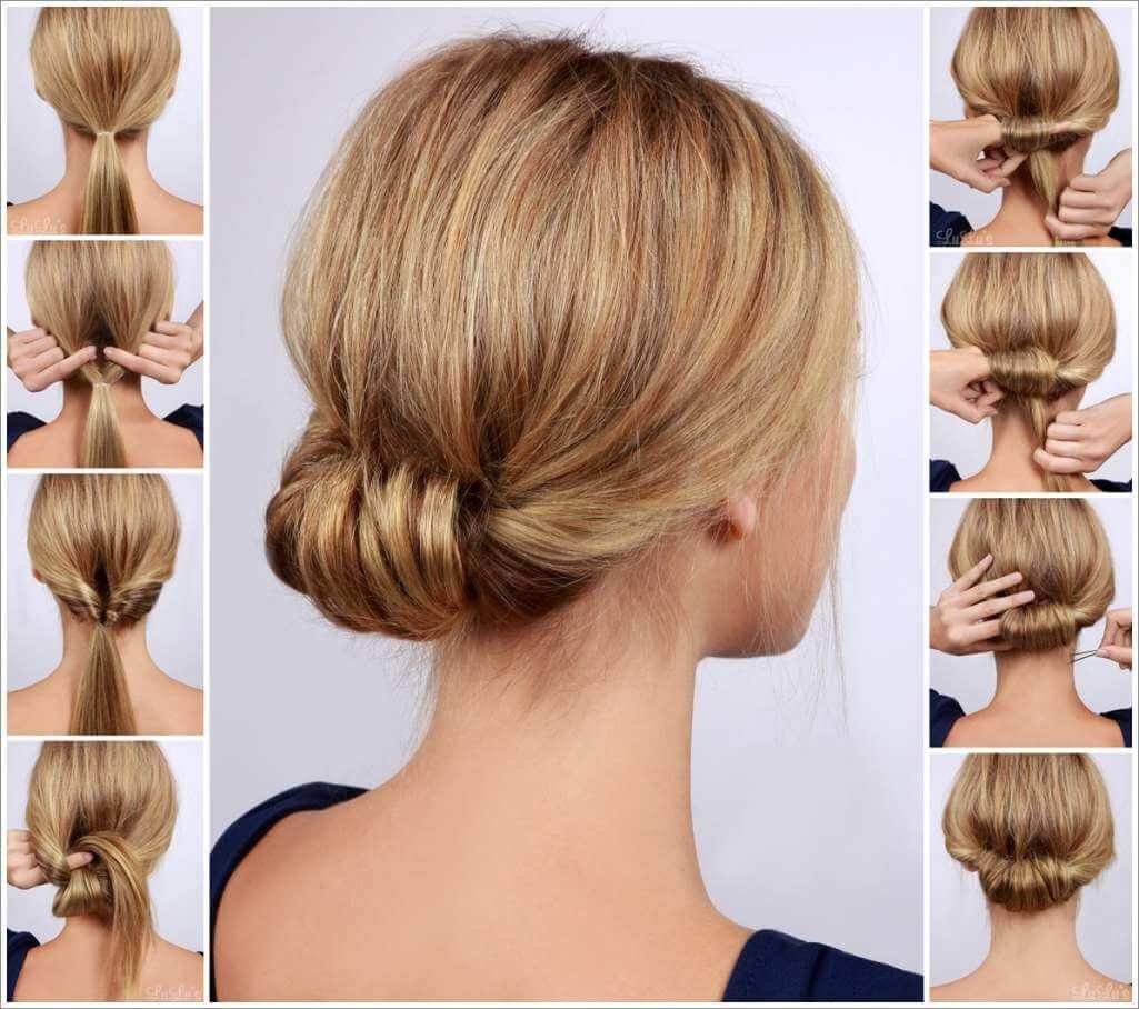 Для виконання необхідно попередньо накрутити волосся, і зібрати їх в хвіст. Для того щоб надати зачісці об’єм, слід зробити невеликий начісування. Прикрасивши просту укладку біжутерією і додатковим декором, можна отримати прекрасний вечірній варіант зачіски.