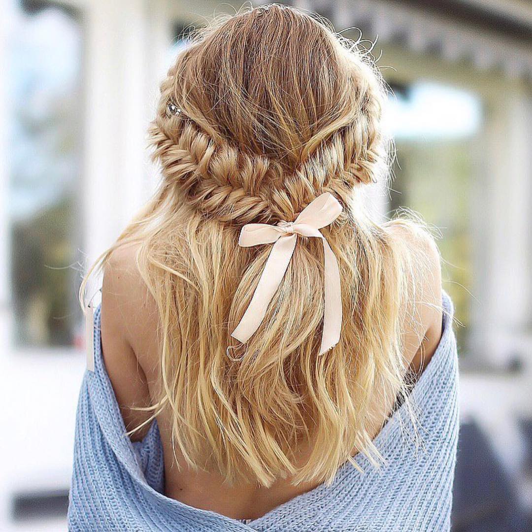 Ретро зачіски вважаються класикою. Найчастіше їх використовують для урочистих заходів. Для її виконання слід відокремити верхню частину волосся і зробити начісування. При цьому не варто забувати про засоби фіксації. Решта волосся зав’язуємо на потилиці у вільний хвостик. Зверху хвоста зав’язуємо стрічку. Ніжна і романтична зачіска готова. При бажанні можна накрутити хвіст за допомогою плойки або бігуді.
