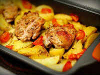 Свинину з картоплею в духовці можна готувати хоч в будні, хоч у свята — це безсумнівний плюс страв.