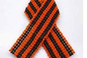 Георгіївська стрічка з бісеру виглядає по-особливому святково і урочисто, але при цьому лаконічно і стримано.