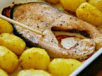 Як доповнення, картопля ідеально підходить до будь-якої червоної риби. Горбуша, запечена з картоплею
