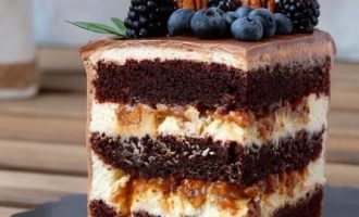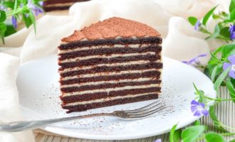 Шоколадно-творожний торт – вишуканий десерт, в якому вологі бісквітні коржі прошарбовані тане в
