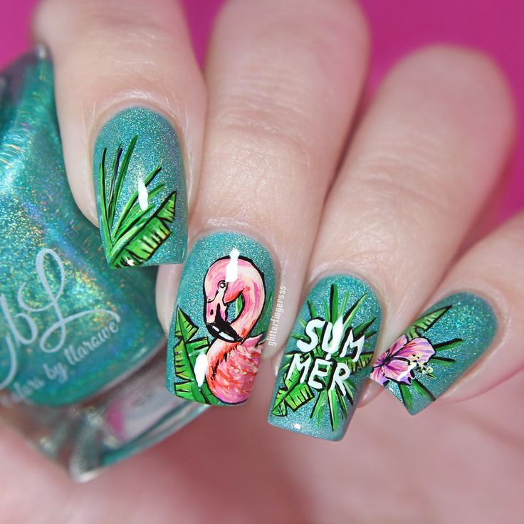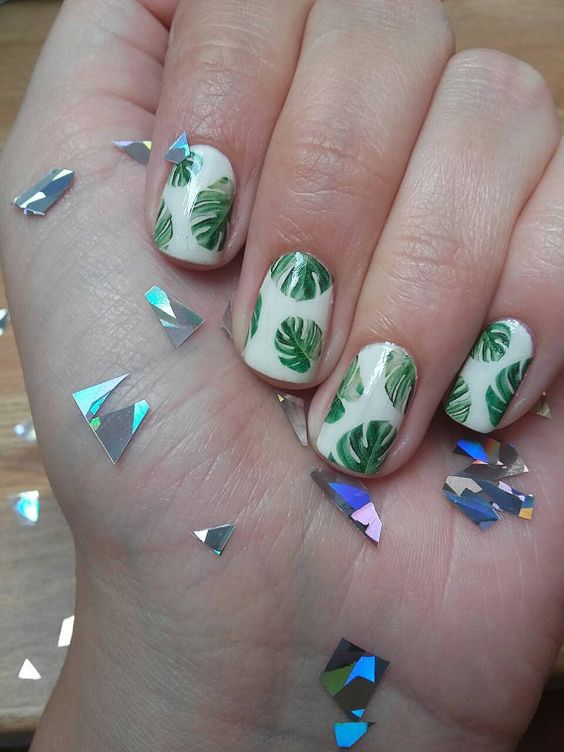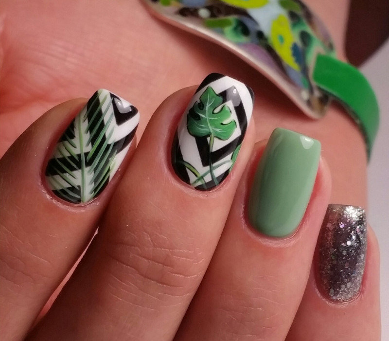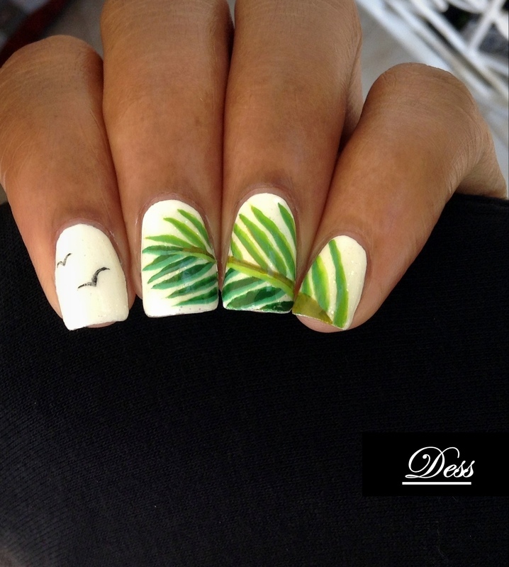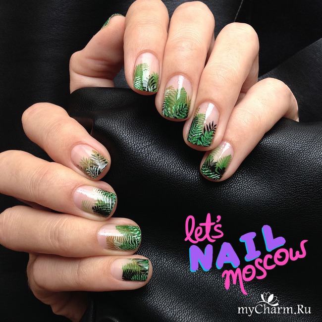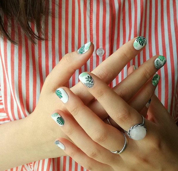 Манікюр з листям пальми — найкращий варіант курортного нейл-арту