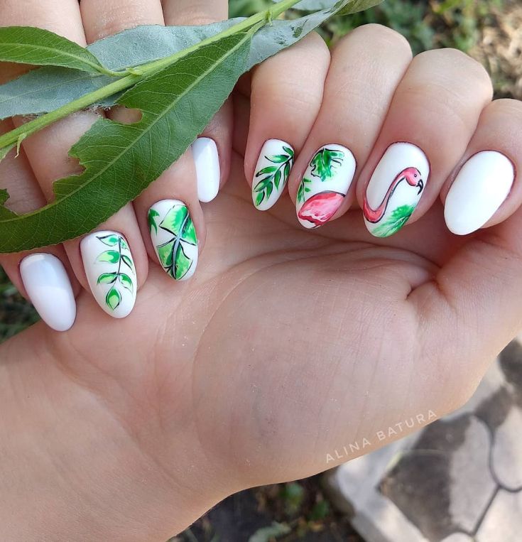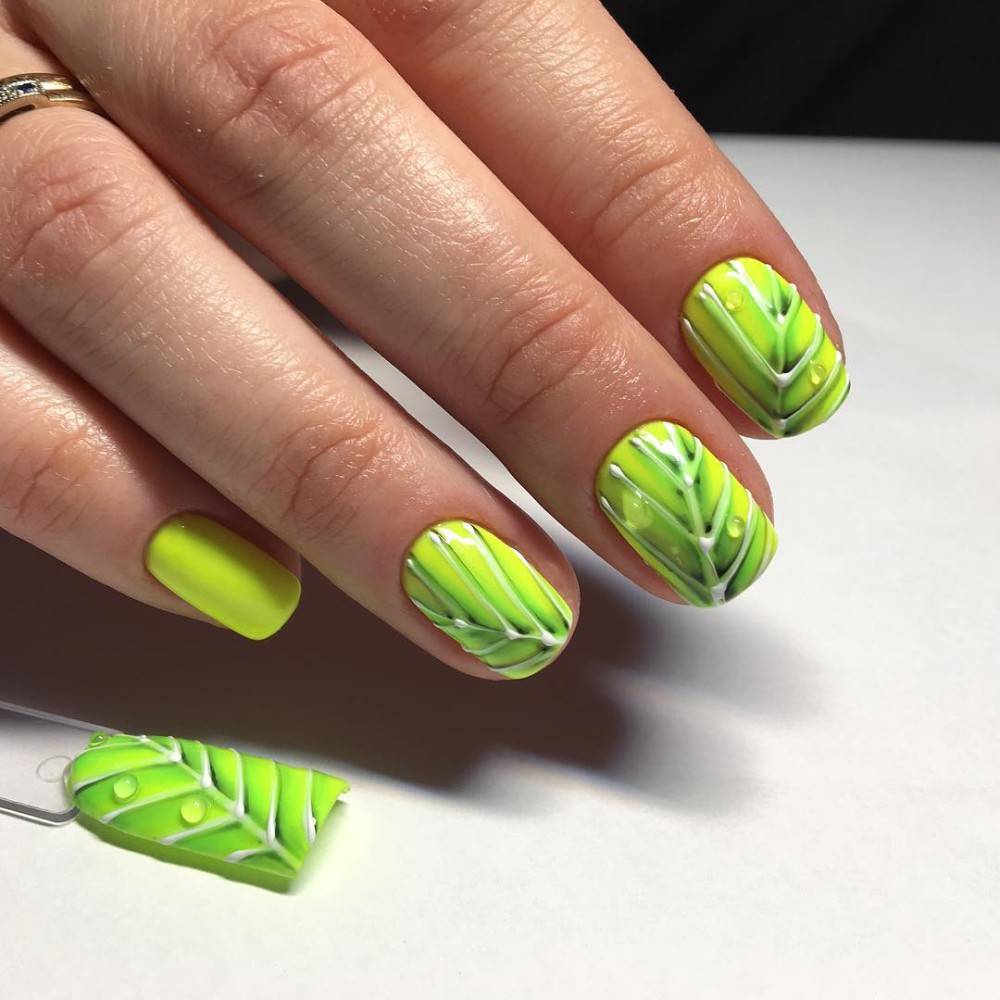 Підбирати фарби для майбутнього манікюру варто, виходячи з образу, який збираєтеся створити. Не варто чекати підходящого моменту для яскравого або ніжного манікюру з листочками дерев і рослин, адже тематику манікюру можна підібрати для будь-якого часу року. На нігтики можна зобразити і спекотні тропіки, і багряний осінній листопад, і засніжені гілочки ялини. Важливо лише дочекатися відповідного сезону для чаруючого нейл-арту. Які ж варіанти нігтьового дизайну з листям найактуальніші?