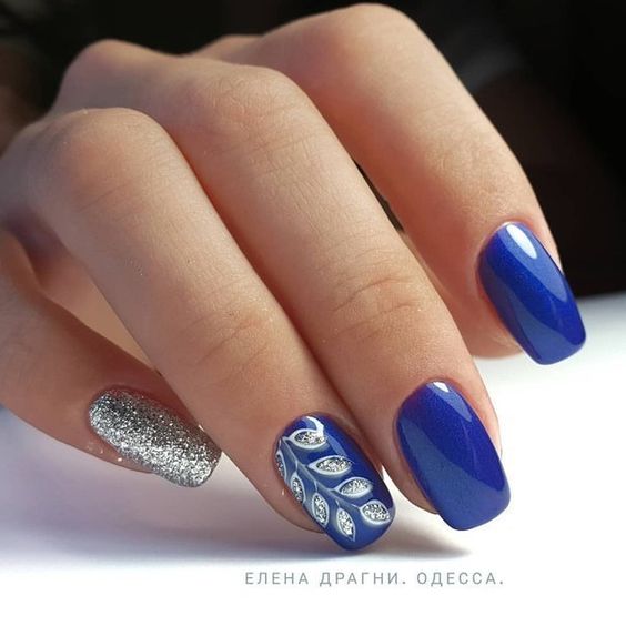 Манікюр з гілочками або листочками папороті чудово виглядає з двома або одним нігтями, вкритими в блискітки. Це допоможе розбавити рослинну тематику, додасть блиску і сяйва нігтиками. Підкреслити красу папоротникового листа можна за допомогою 3-д техніки манікюру шляхом виділення певних частин темними відтінками.