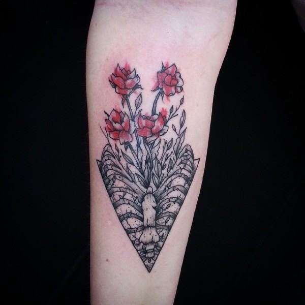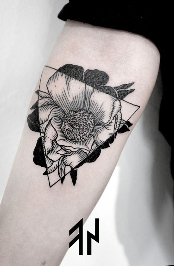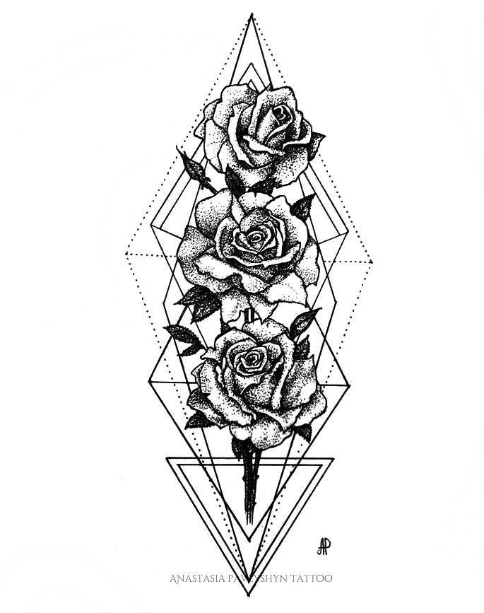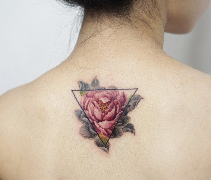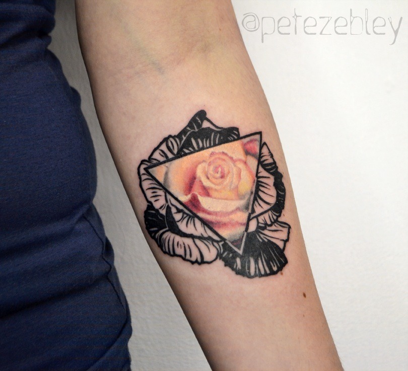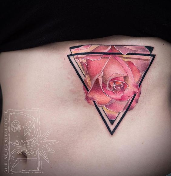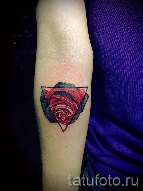Жіноче тату троянда в трикутнику: красиві варіанти