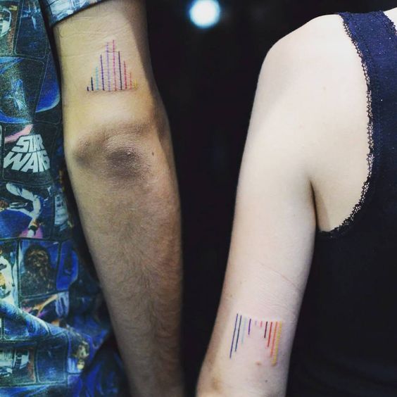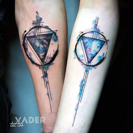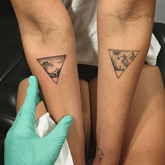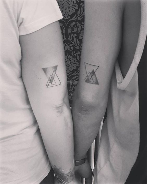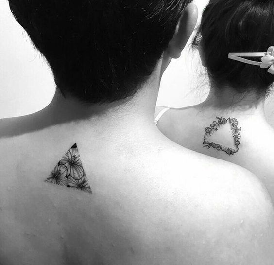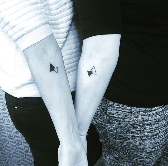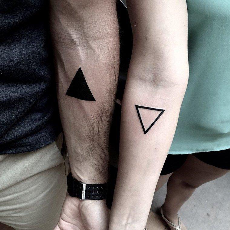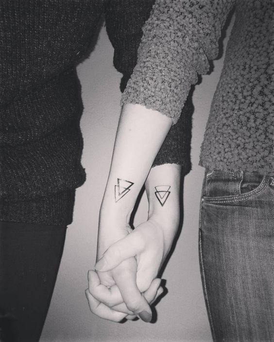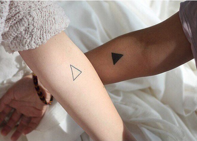 Чоловіки вважають татуювання трикутник, зроблену в парі з другою половинкою, символом могутності, краси і розуму. Парне тату символізує про злиття душ в одне ціле і єдність відносин. Певні деталі в парних татуювання вказують на те, що між закоханими існує певна нерозривний нитка, яка підтримує стосунки. Перевернуті зображення трикутників вказують на те, що обидва людини підтримують один одного у всьому. В цілому, всі парні зображення носять визначений характер, у тому числі додаткові орнаменти до трикутника.