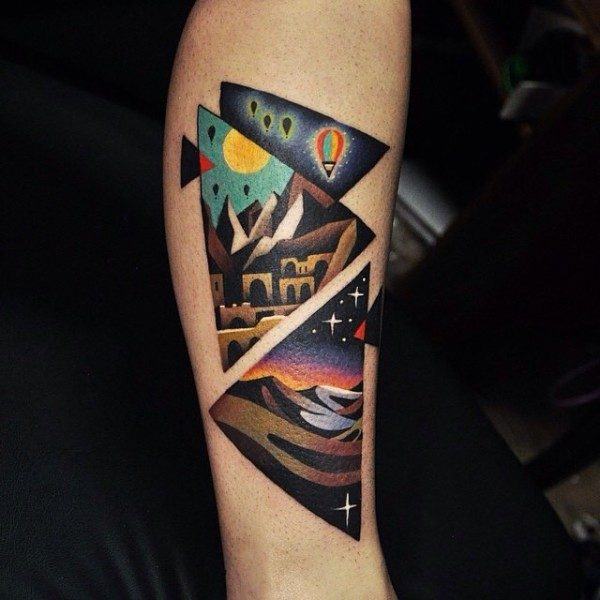 Кольорове і чорне тату трикутник на руці: справжні приклади художнього мистецтва