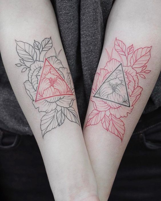 Дуже часто дівчата вибирають для себе зображення у вигляді трикутника, заповненого квітковими мотивами. Троянди – найпоширеніше з них. За допомогою татуювання троянд у трикутнику дівчина привертає до себе увагу. Дана натільна композиція прекрасно виглядає як в малому, так і великому форматі. Місце для розташування татуювання трикутника з трояндами можуть бути самими різними. Все залежить від обраного розміру. Взагалі, значення комбінації трикутника з трояндою трактується як жіноча енергетика. Представниці прекрасної статі, на тілі яких можна побачити тату з трояндою в комбінації з трикутником, відрізняються особливим ставленням до художнього мистецтва, музики і творчості в цілому.