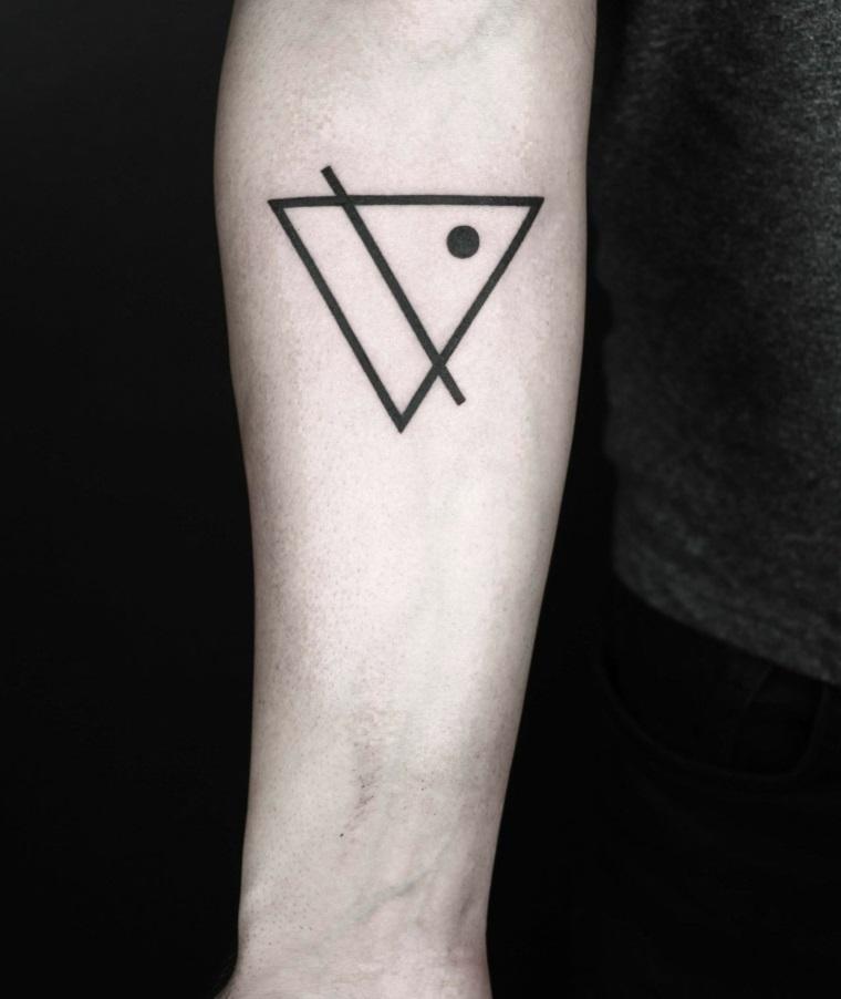 Татуювання у вигляді трикутника – дуже поширений варіант у сучасних дівчат. Дані символи зустрічаються досить часто в самих різних частинах жіночого тіла. Дуже часто майстри тату люблять включати в центр трикутника всілякі квіткові композиції, абстракції та інші хитромудрі сюжети. З точки зору містики геометрична фігура трикутник на тілі трактується як щось таємниче. Смислове значення зводиться до людської складової, а саме: душі, тіла і розуму. Альтернативне сприйняття трикутник татуювання трактується як взаємозв’язок між появою на світ, етапами життя і смертю. Жінки сприймають татуювання у вигляді трикутника як особливу нитка, що зв’язує молодість і старість, а між цими етапами – час материнства. Тату трикутник вважається досить універсальним натільною малюнком. Це означає лише те, що може зробити собі тату не тільки молода дівчина, але й старші жінки.