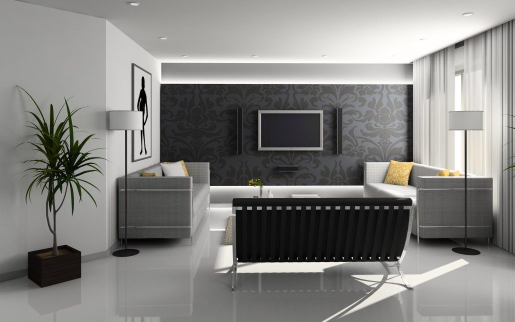 При організації ремонту в квартирі необхідно прибрати «аляпистые» елементи декору і зайві речі. Їх слід замінити лаконічними картинами і чорно-білими фотографіями. В техніці і оздоблювальних матеріалах видно дорожнеча хай-тека. У всьому іншому повинні відчуватися ненав’язливість і легкість. Натяжними глянцевими конструкціями декоруються в кімнаті стелі. Бажано меблі використовувати пластикову. Текстиль повинен бути однієї колірної гами та правильної геометричної форми.