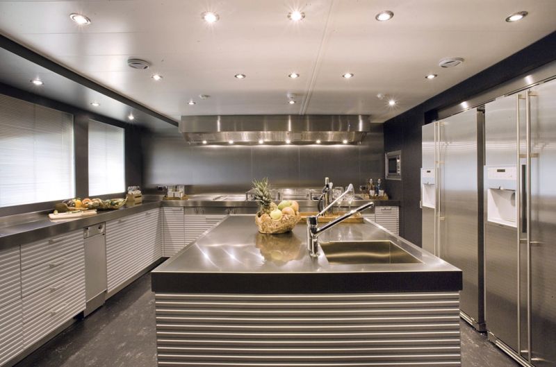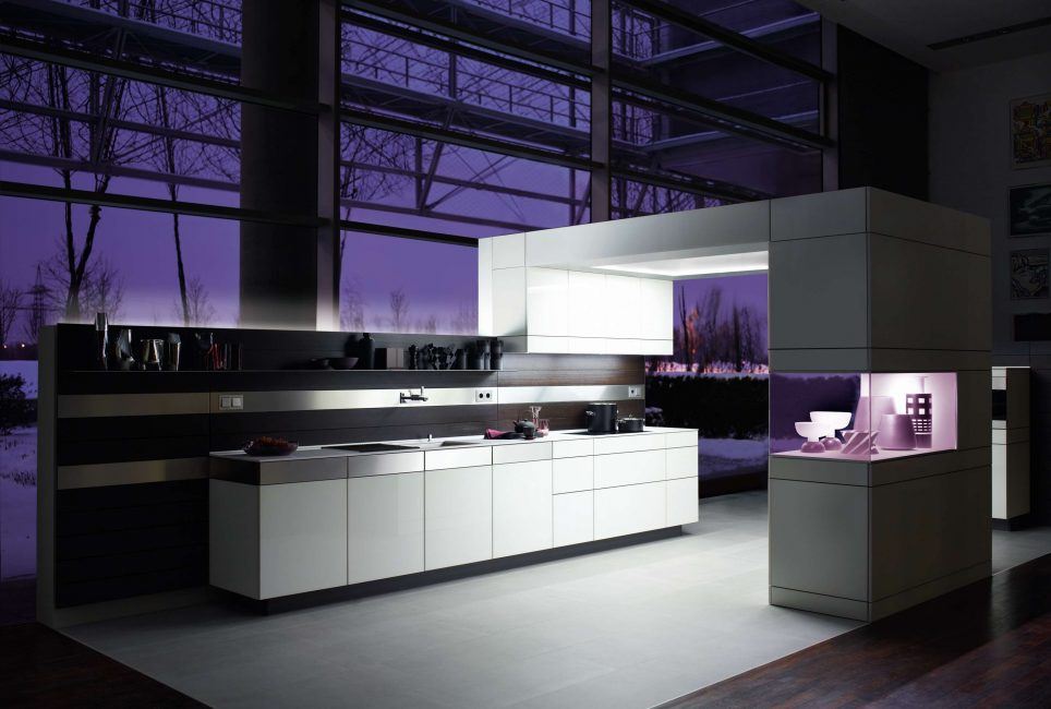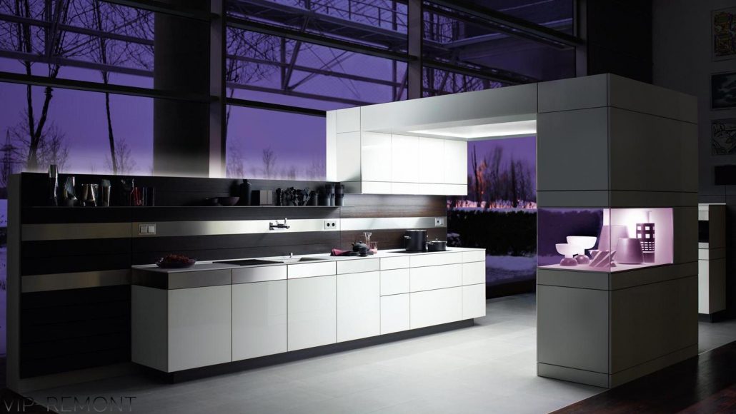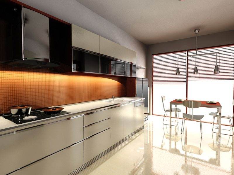 Даний напрямок в інтер’єрі передбачає присутність сучасної побутової техніки. Наявність великої кількості дзеркал і скла в кухні є основою декору даного напрямку. Ця краса поєднується з практичністю і міцністю. Правило одне – мінімалізм і простір. Пол краще обробити неординарною плиткою або кахлем.