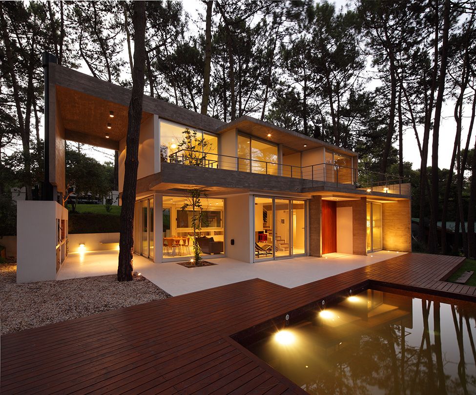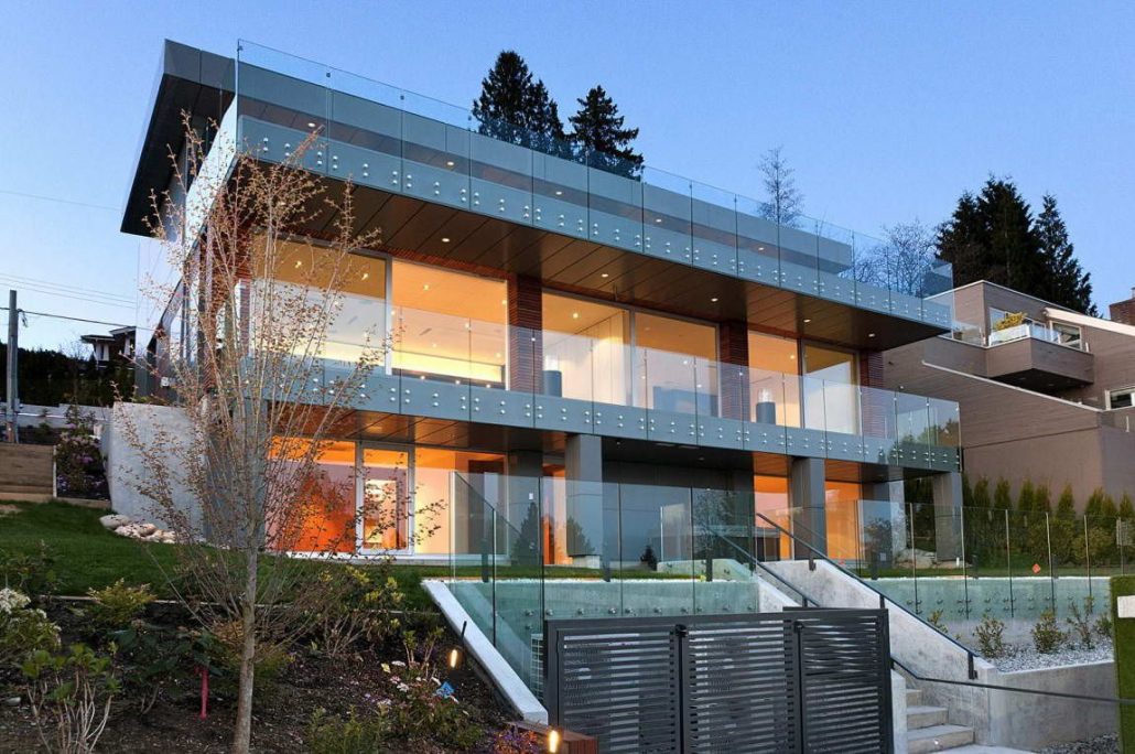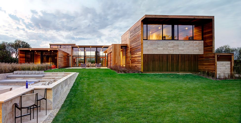 Інноваційний заміський будинок упорядковують не тільки внутрішньо, але й зовні. Заможне житло відрізняється зеленим газоном, лаконічним садом, басейном, наявністю терас і орних широких вікон. Зовні споруда виконана у формі куба, футуристичні елементи прикрашають її.