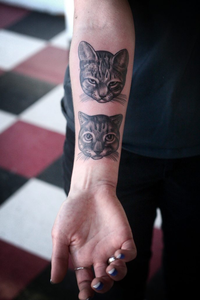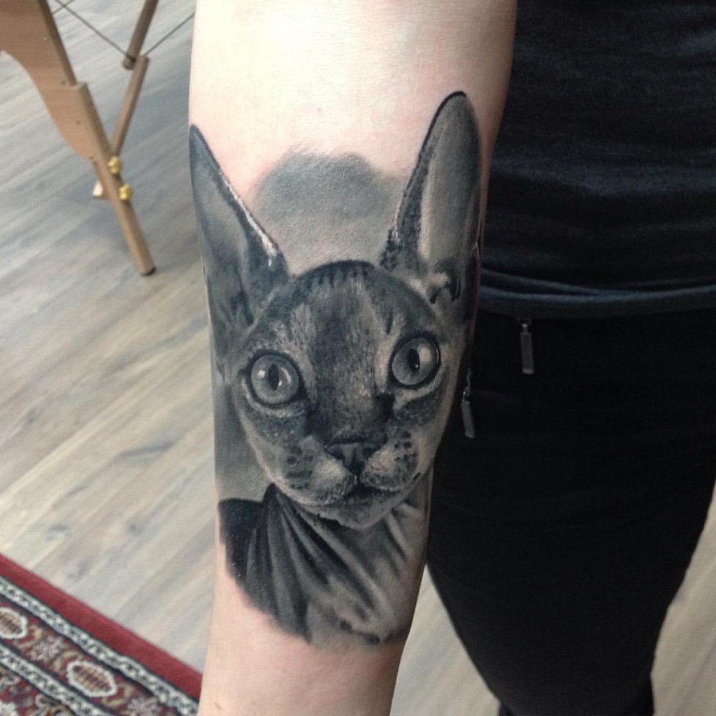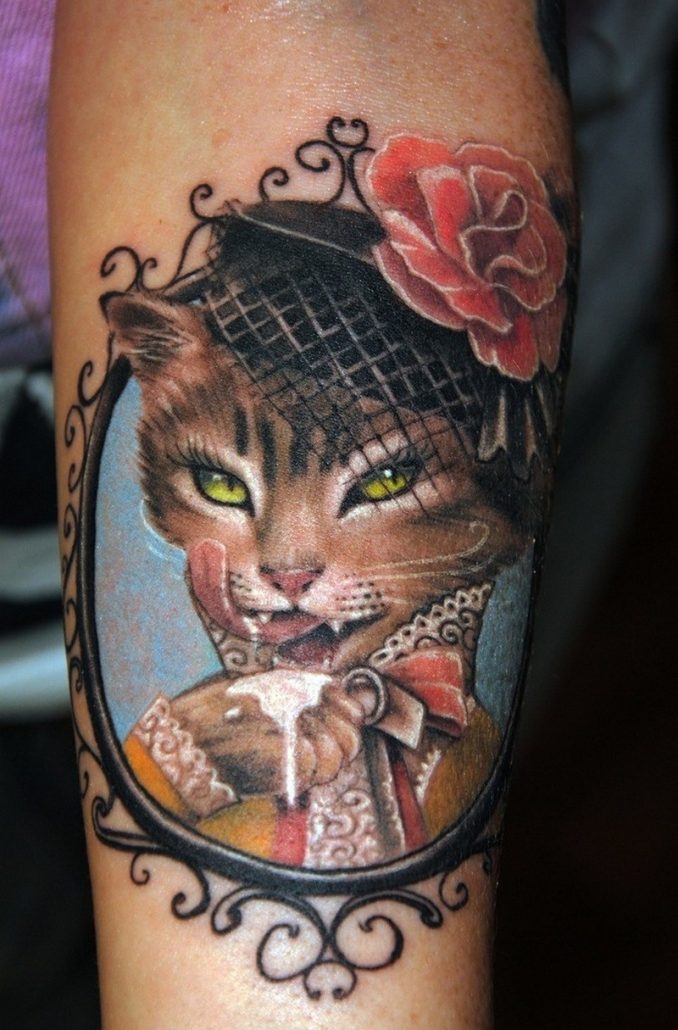 Нерідко на передпліччі можна побачити кота, який вказує на незалежність і кмітливість власниці такого тату. Хоча можна зустріти і інші, більш суперечливі трактування даного зображення. Наприклад, у індійців є повір’я, згідно з яким кіт є уособленням злих сил або навіть злодійства. А ось у греків і римлян це тварина асоціюється зі свободою. Якщо заглибитися в релігійний підтекст такого малюнка, то християни здавна наділяли це тварина демонічними силами.