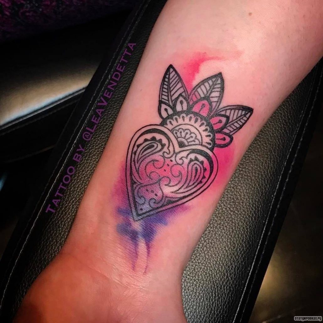 Дуже часто дівчата вибирають тату у вигляді серця, як символ ніжності, любові і романтики. При цьому серце не обов’язково повинно мати класичний вид. Непогано буде виглядати серце з кристалів або намальоване в геометричному стилі. Щоб тату було справді унікальним, ви можете самостійно розробити його ескіз.
