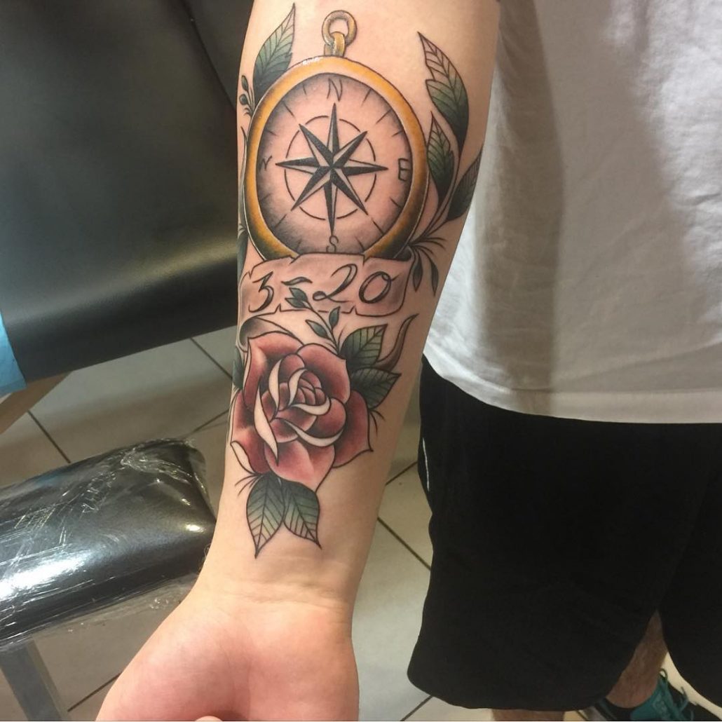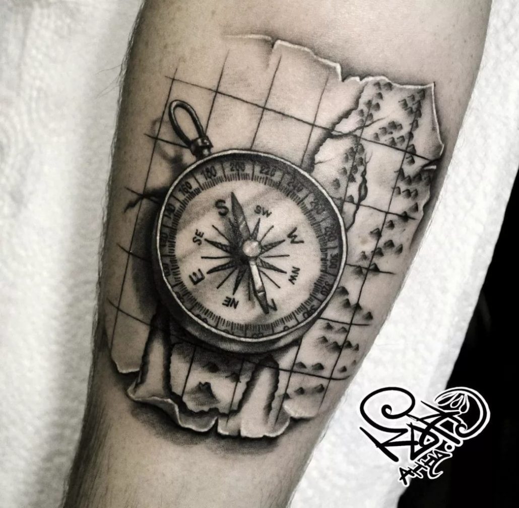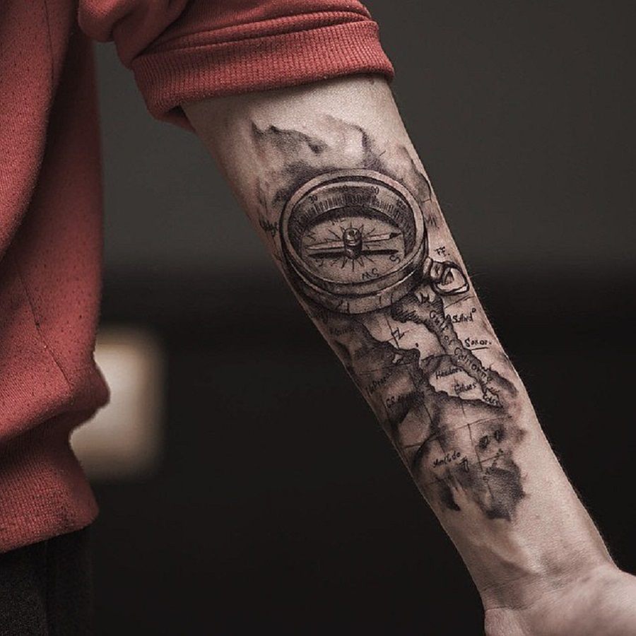 Набагато рідше можна побачити на передпліччі зображення компаса, яке може мати глибокий сенс. Є думка, що компас сприяє знаходження вірного життєвого шляху. До того ж таке тату може означати рівновагу, вірність і сталість людини, на передпліччі якого воно нанесено.
