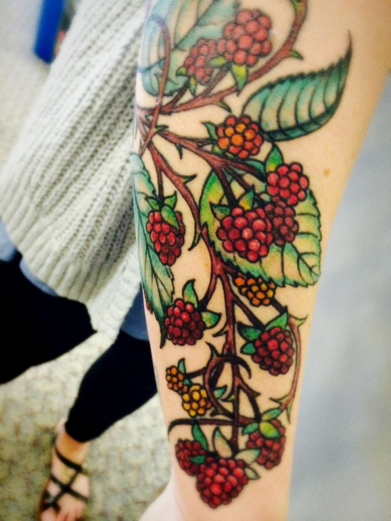 Незвично на руці виглядатиме татуювання у вигляді малини. Зазвичай її асоціюють з любовними переживаннями і бажанням поринути в них з головою. Також вона може вказувати на те, що дівчина пізнала велике розчарування в любові, яка боляче її поранила. Саме так можна трактувати малюнок з шипами.