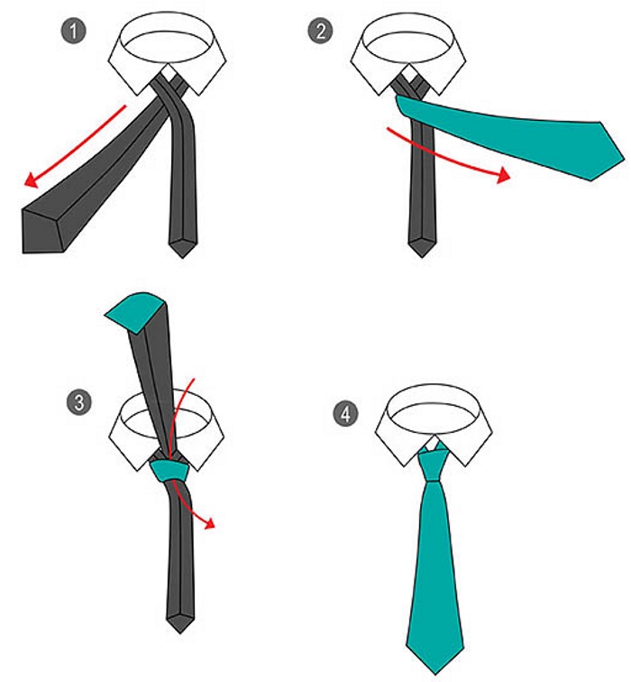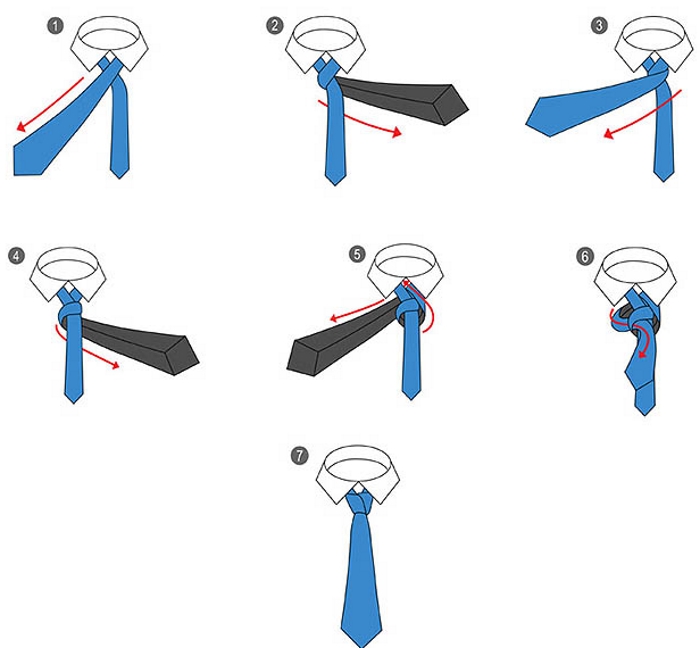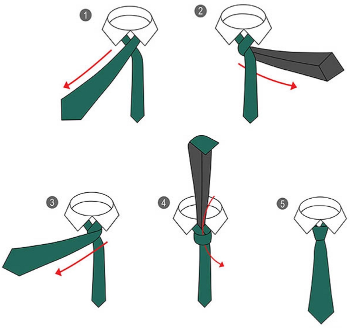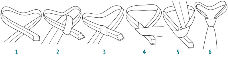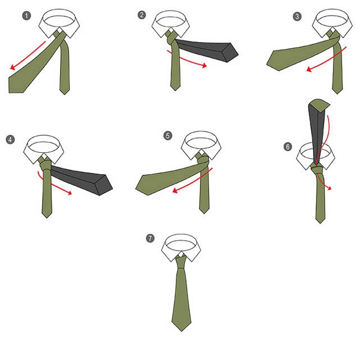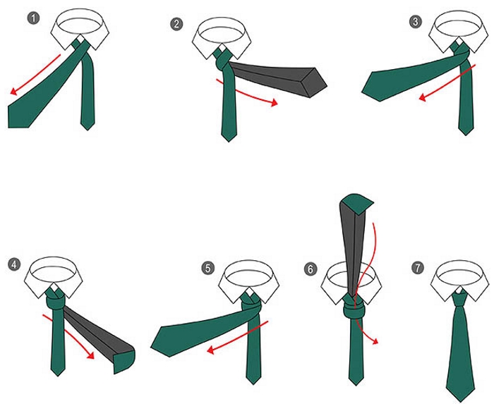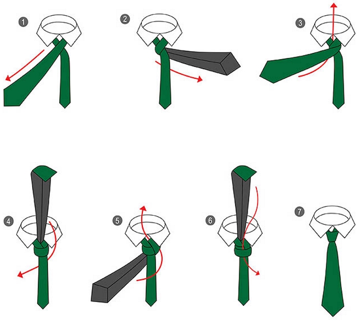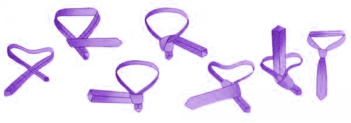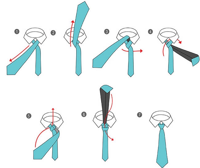 Відповість на питання про те як зав’язати краватку схема з покроковим описом дій: