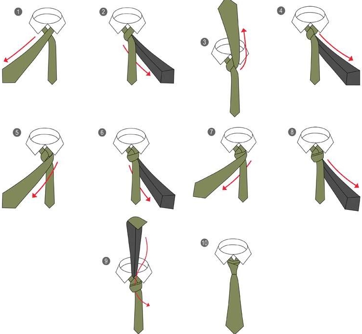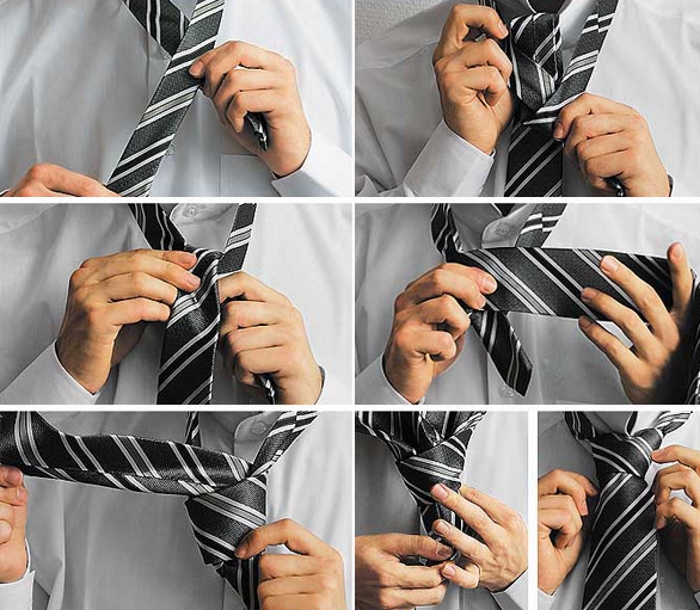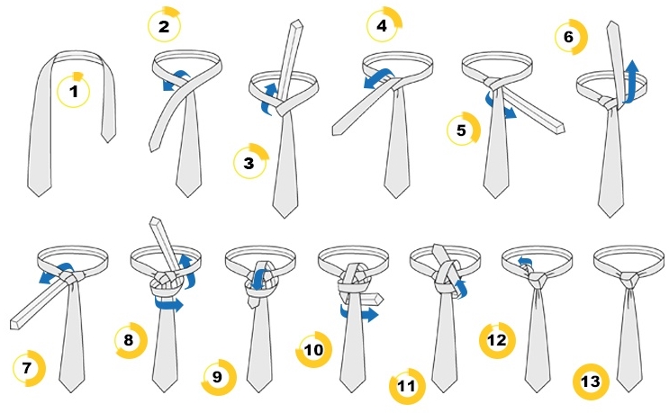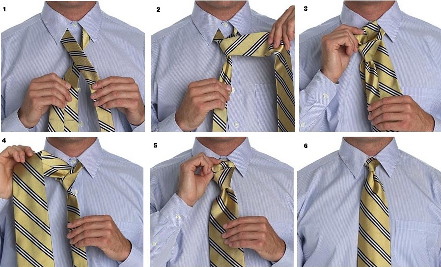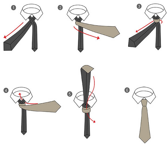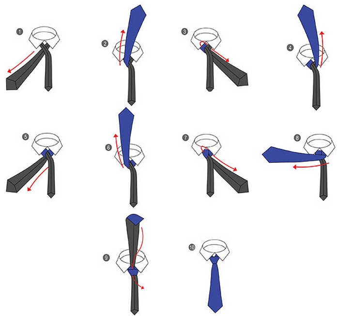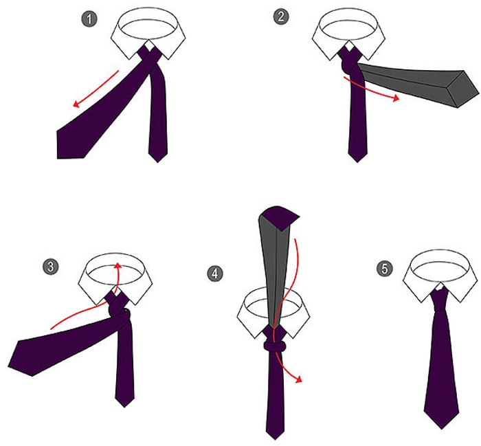 Відповість на питання про те як зав’язати краватку схема з покроковим описом дій:
