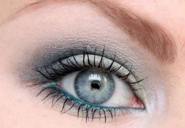 - Підкреслити глибину сірих очей допоможе блакитна підводка.