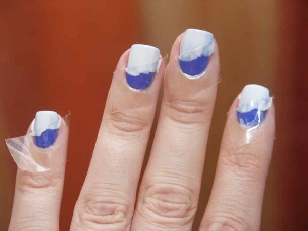 - Зробити френч можна і без спеціальних наклейок. Для роботи потрібно підготувати гумки або скотч.