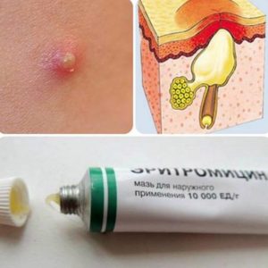 Антибіотик Еритроміцин крім перорального прийому також застосовується у вигляді мазі для шкіри обличчя від прищів. Мазь володіє антибактеріальною дією. Припиняє життєздатність інфекційних бактерій і зупиняє процес утворення подальшого появи вугрів. Після курсу лікування помітно вирівнюється поверхня шкіри.