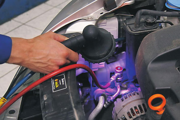 - Метод перевірки ультрафіолетовою фарбою. Простий і ефективний спосіб пошуку проблеми з витоками фреону в системі кондиціонування. Під час заправки кондиціонера в систему додається трохи ультрафіолетової фарби. Після цього кондиціонер на кілька хвилин включається, а далі систему кондиціонування висвітлюють ультрафіолетовою лампою в пошуках місця витоку;