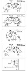 2. Вирівняти мітку ланцюга ГРМ на зірочках распредвала так, щоб вони були на горизонтальній лінії верхньої поверхні головки циліндрів.