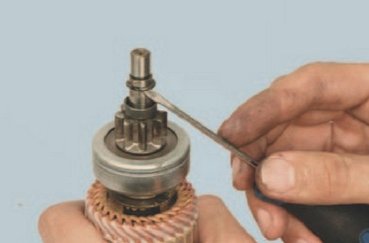 Обмежувальне кільце краще встановлювати, скориставшись пассатижами. Перед тим, як встановлювати втягуюче реле, на стикається з кришкою статора поверхню слід нанести силіконовий герметик. При установці щіткотримача на якір щітки бажано розширити і закріпити підходящої оправкою.