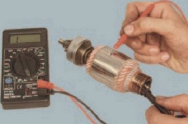 Перевірка якоря робиться шляхом подачі напруги 12 В на стартер в обхід втягивающего реле. Якщо він працює, то все в порядку. Якщо ні, то проблеми в якорі або щітках, необхідна подальша розбирання пристрою для візуального огляду і перевірки опору мультиметром.
