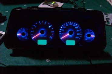 Установка діодного освітлення в панель приладів. Можна просто замінити стандартні лампочки на світлодіодні або ж придбати диодную стрічку і запаяти її в щиток. Але врахуйте — якщо лампочка вийде з ладу, її можна без проблем замінити, чого не скажеш про світлодіодним стрічки. Якщо вона перегорить, то доведеться розпаювати стрічку і ставити замість неї нову. Хоча ресурс експлуатації світлодіодної стрічки досить високий.
