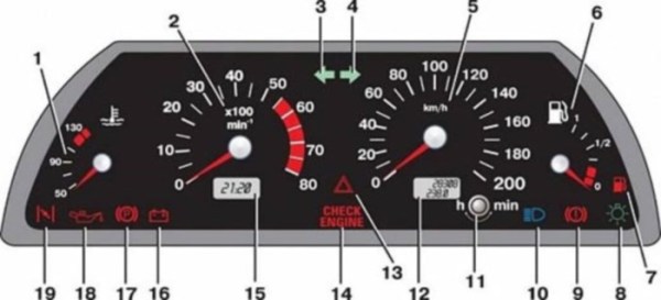 Почнемо з опису і позначень значків і позначень приладового щитка в 21102:
