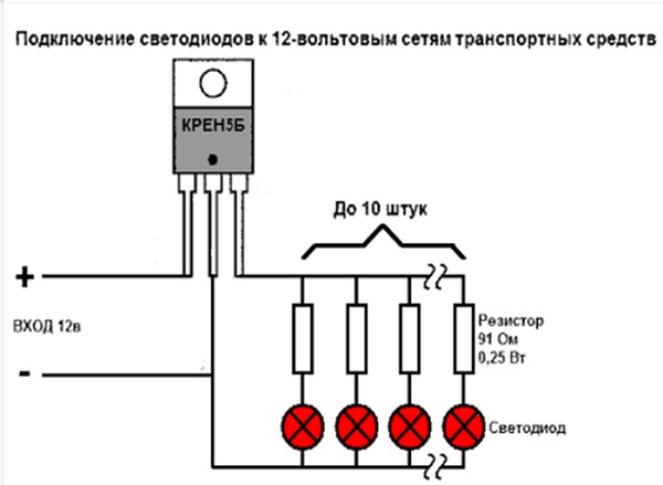 Харчування світлодіодні елементи в автомобілі отримують від акумулятора. Поєднуючи діоди паралельно або послідовно, їх можна об’єднувати в блоки. При цьому зберігається постійна напруга. Для підключення ліхтарів слід використовувати регулятори та інші додаткові елементи. В якості допоміжної ізоляції використовується гелевий силікон, захищає від вологи і перепадів температур.