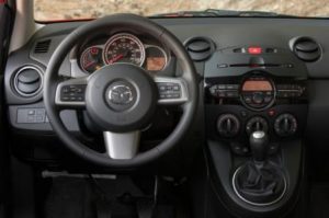Незважаючи на невеликі розміри салон Мазда 2, виглядає зовсім не тісним. Велика, для такої машини, колісна база в 2490 мм, рознесені по максимуму колеса, тонка дах і з педантичністю продумана внутрішня компоновка, створюють відчуття простору в салоні.