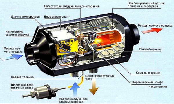 Основне пристрій, оснащений камерою згоряння. Тут відбувається процес згоряння пального, що забезпечує хороший прогрів салону автомобіля.