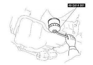 9. Встановити новий елемент масляного фільтра, попередньо наливши в нього трохи олії і змастивши краю гумової прокладки,тим же маслом.