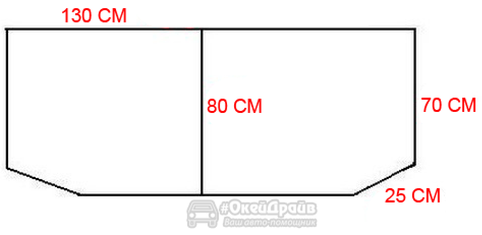 Нижче наведена схема, на якій показано, які необхідно виміряти розміри для виготовлення автоодеяла своїми руками. Зверніть увагу, що самі розміри наведені виключно для прикладу, тоді як у кожного автомобіля вони індивідуальні. Визначившись з розміром автомобільного ковдри, можна переходити до вибору матеріалів для його шиття.